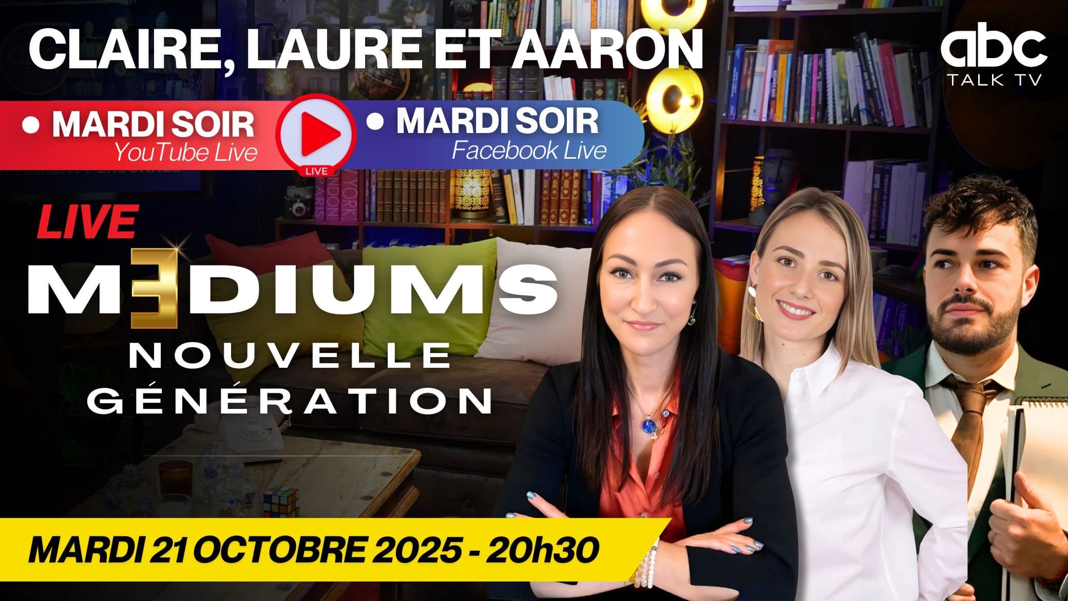 Réservez votre place pour l'évÚnement Médiums nouvelle génération en suivant le lien: https://abctalk.fr/evenements/mediums-nouvelle-generation#ticket