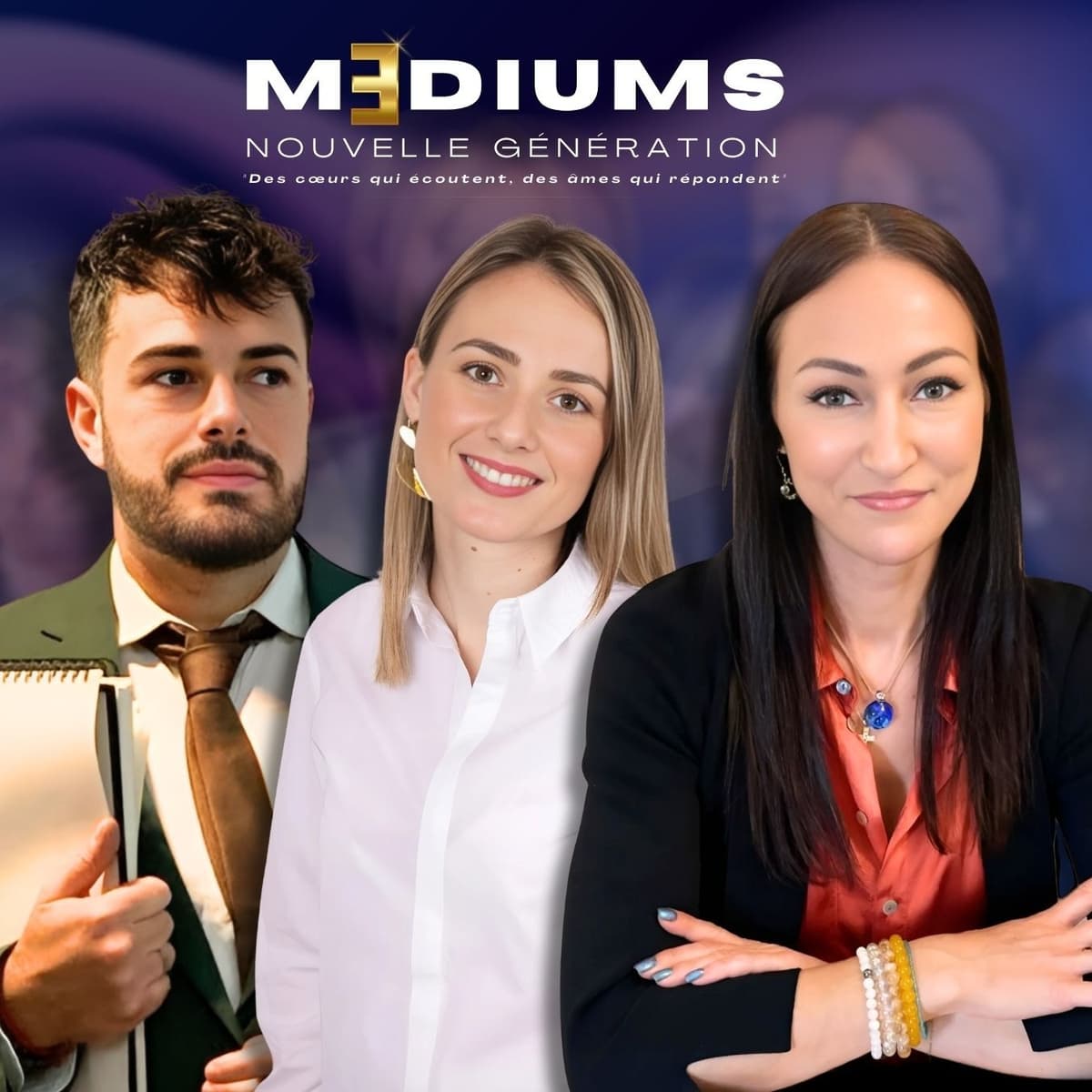 Claire, Laure et Aaron incarnent un souffle inédit dans l’art de la médiumnité, mêlant authenticité, clairvoyance et sensibilité.